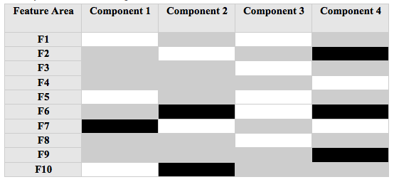 As a system ages, small increments of software debt are allowed to stay so the team can sustain their velocity of feature delivery. The team may be complaining about insufficient time to fix defects. Figure 1.2 shows a system that has incurred software debt across all functional areas and components.