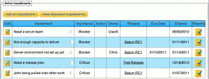 Given the importance of impediment management on dollars and dates associated with a release, we’ve enhanced AgileEVM to manage impediments at the release, project, product, program, and project portfolio levels. There are 6 attributes to an impediment that we have found useful to manage them effectively: