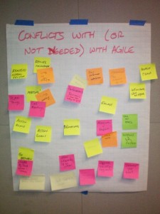 As the Department of Defense focuses on “delivering 75% solutions in months [instead of] 100% solutions in years” Agile is finding its way into big, traditionally managed programs. This event http://www.afei.org/events/2A01/Pages/default.aspx specifically addresses Agile in Defense. My presentation was an invitation following a successful meeting at the ADAPT meeting and also included tips for making Agile successful. See presentation link below. Several of the speakers were from Defense departments and provided good insights.